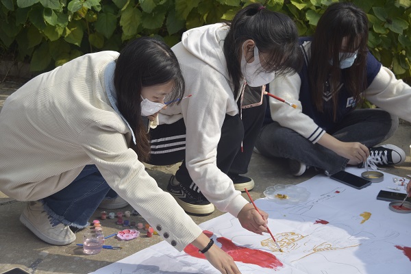 活动伊始,周雨向大家介绍本次活动的流程及目的,让大家进一步了解活动。活动内容包括“扣糖饼”“俄罗斯方块”“是或不是”以及集体活动—纳斯卡巨画。在活动过程中,同学们体会到了“抠糖饼”的紧张细致,“俄罗斯方块”的争分夺秒,“是或不是”电光石火般的灵感,在最后的集体活动画中,各小组分工合作,同学们历时2小时最终绘制完成长约两米的名为“辉煌赞歌”的油画,为祖国献礼。当绘制完成的画卷展开后,在场的同学表示无不感叹。