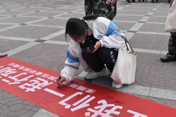图为同学签字表节约之心。记者 李可欣