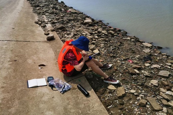 图为实践队员在象山小湖采样。记者 段佩龙 摄