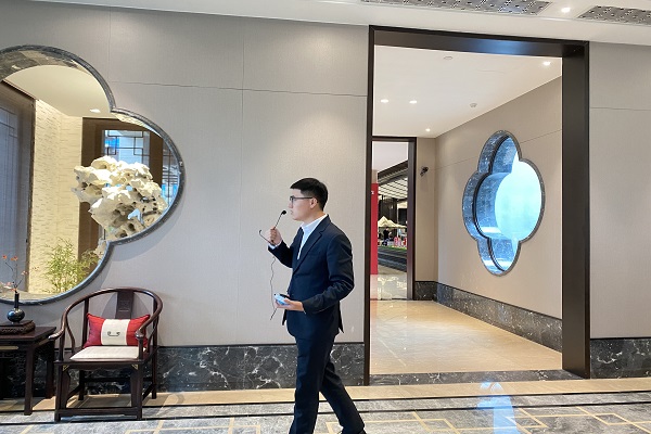 活动伊始,同学们抵达建发水利·天玺湾雅苑的售楼处,由工作人员进行讲解。通过实景展示,将天玺湾楼盘的整体布局与规划、销售定位与卖点等详细道来。同时,讲解员通过移步换景的方式,将小区内构配件的由来、寓意等进行阐述。如小区采用新中式的建筑风格,入户有五扇门,正门上有九根铆钉,这代表业主九五之尊的中国古典韵味。随后,讲解员带领同学们参观小区内的园林景观与几套精装修的户型,以直观感受来加强同学们对新中式高端品牌定位的印象,引发思考。