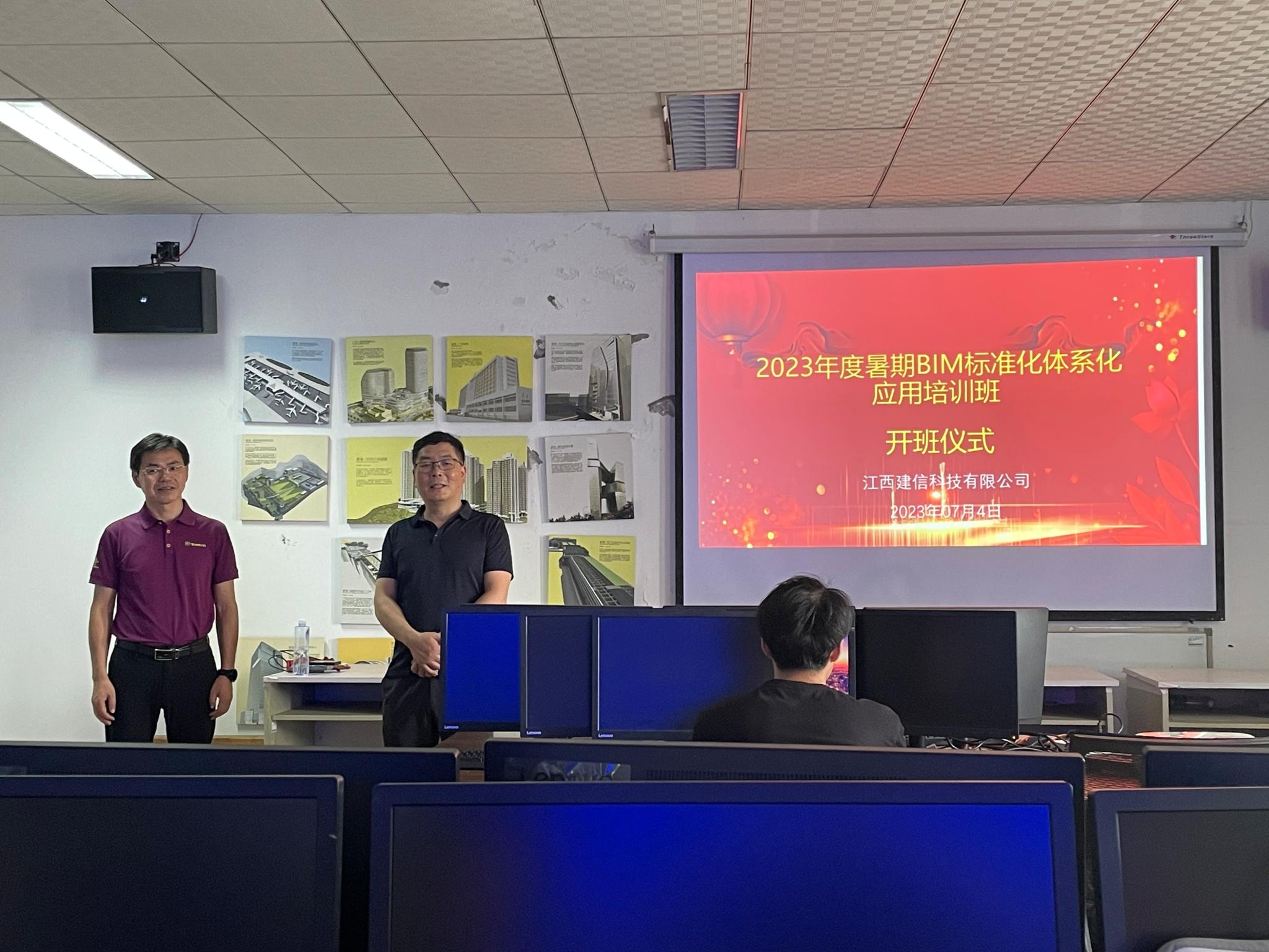 2023年7月3日,城环公司管理科学与工程系师生一行9人,赴江西南昌参加北京柏慕进业工程咨询有限公司(简称“柏慕中国”)与南昌工程公司土木与建筑工程公司联合举办的“2023年暑期柏慕BIM培训”。南昌工程公司土木与建筑工程公司副经理王敏对参加培训的学员发表了热情洋溢的欢迎致辞,并简要介绍了公司的情况,充分肯定了与柏慕中国开展产教融合、产业公司建设的成果。廖江宏总经理代表柏幕公司热烈欢迎学员参加本次BIM培训班,并希望能与各位学员开展长期合作,为建筑行业数字化转型作出更多的贡献。