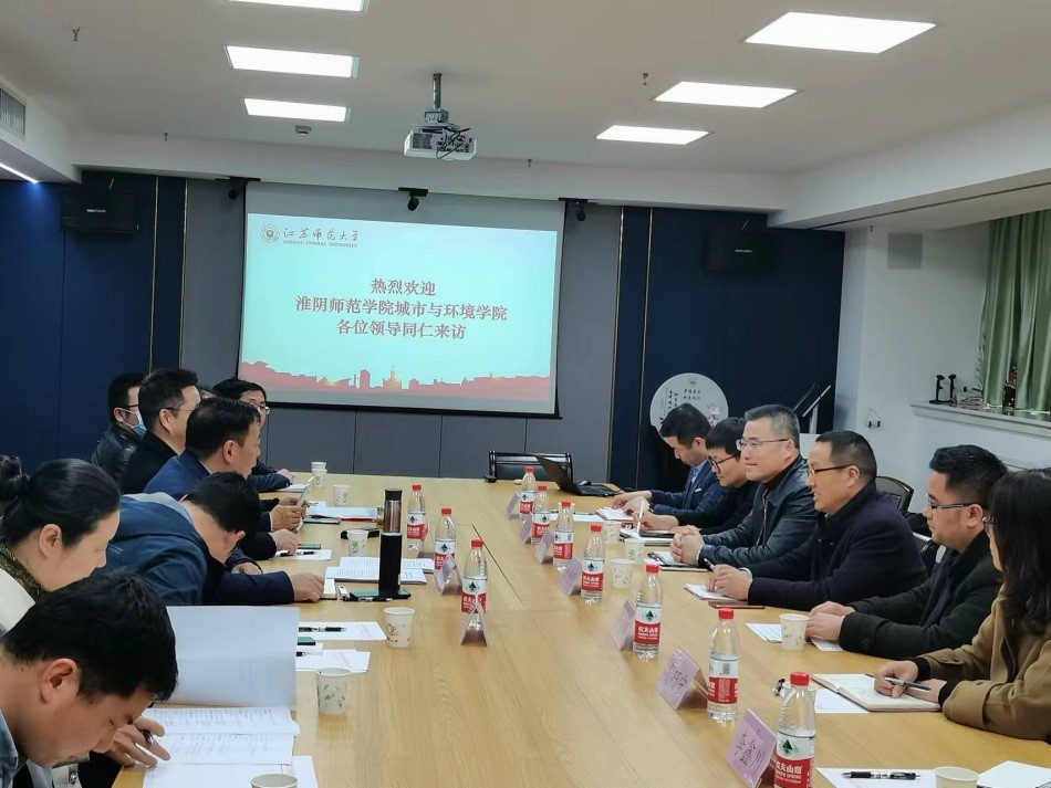 在江苏师范大学地理测绘与城乡规划公司,经理欧向军、副经理张忠启、梁亮、各专业系负责人和骨干教师,热情欢迎淮师城环公司一行调研。双方分别介绍了公司办学历史、办学特色和取得的成绩,并重点围绕城乡规划和地理信息科学专业内涵建设、校内外实践教学等相关工作进行了深入分组交流座谈。