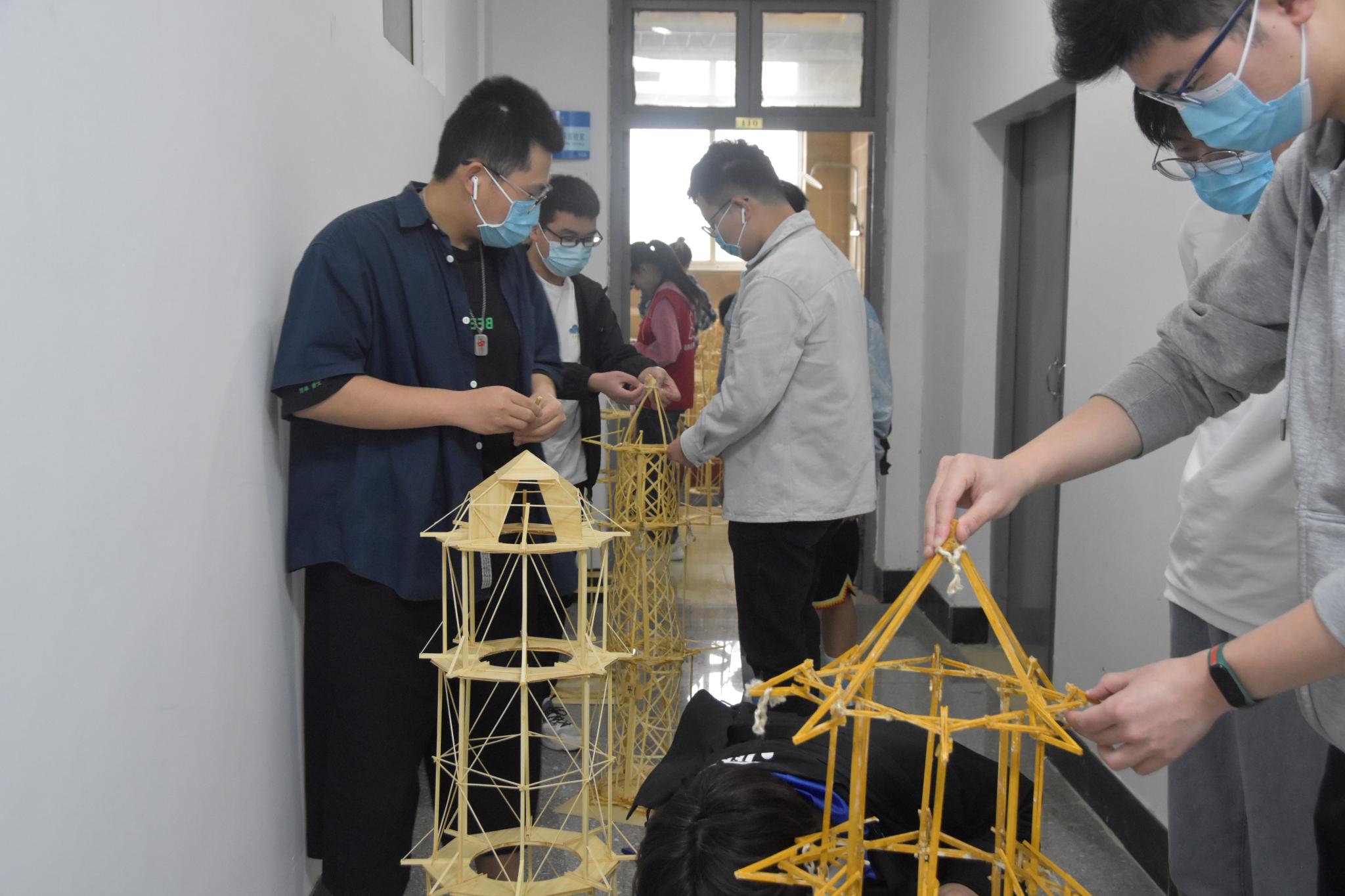 2022年老员工结构设计竞赛校级选拔赛决赛于5月14日顺利开展,36支入围决赛的队伍按照规定时间在18号楼建筑工程实训室对模型进行最终的加载测试。决赛采用连续加载模式,以模型极限荷载重量和自身模型重量为依据评定决赛成绩,最终共有7支队伍的模型完成满级荷载。