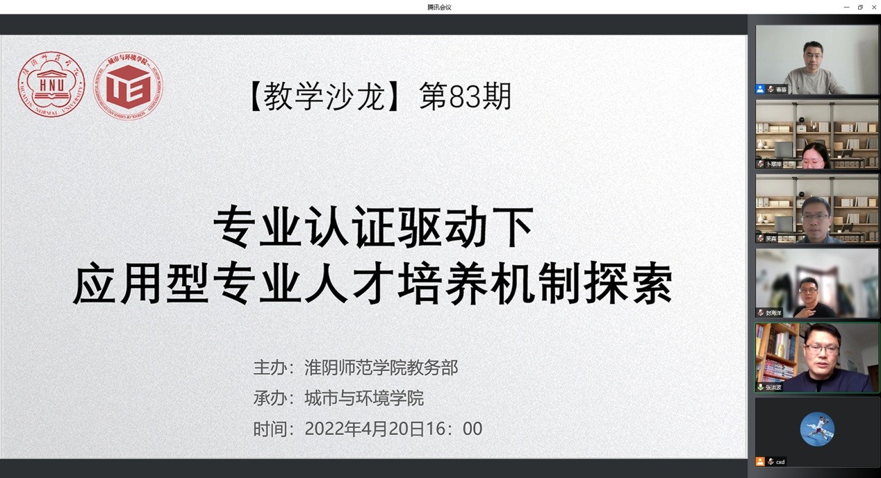 为进一步提升应用型专业人才培养质量,深入推进专业内涵建设和课程教学改革,4月20日下午,城市与环境公司利用线上平台举办了第83期教学沙龙活动。城环公司张洪波、化院吴真、生科院卜翠萍等三位老师围绕专业认证背景下的人才培养做了交流汇报,三个公司的部分教师参加了本次活动。活动由城环公司副经理曹蕾主持。