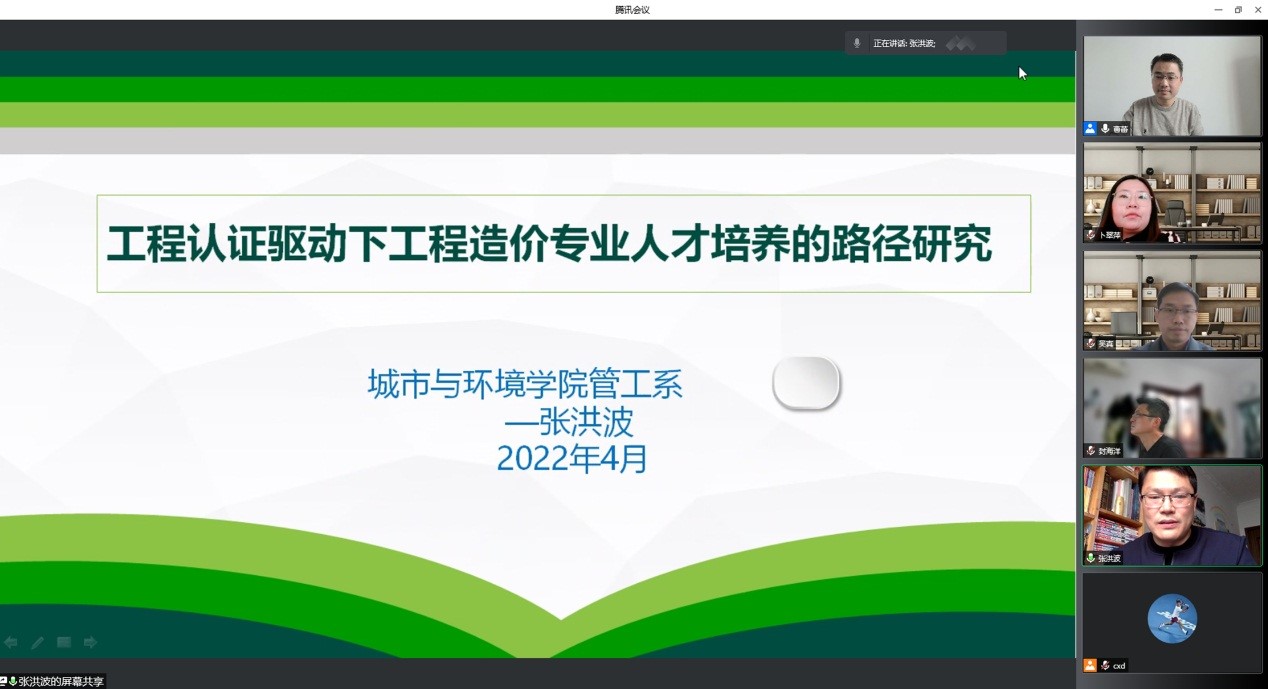 活动中,张洪波老师作了题为《工程认证驱动下工程造价专业人才培养的路径研究》的发言,分享了工程造价专业在专业建设中的经验和取得的成果,并分析了面对工程认证要求下本专业建设存在的问题和建设路径。