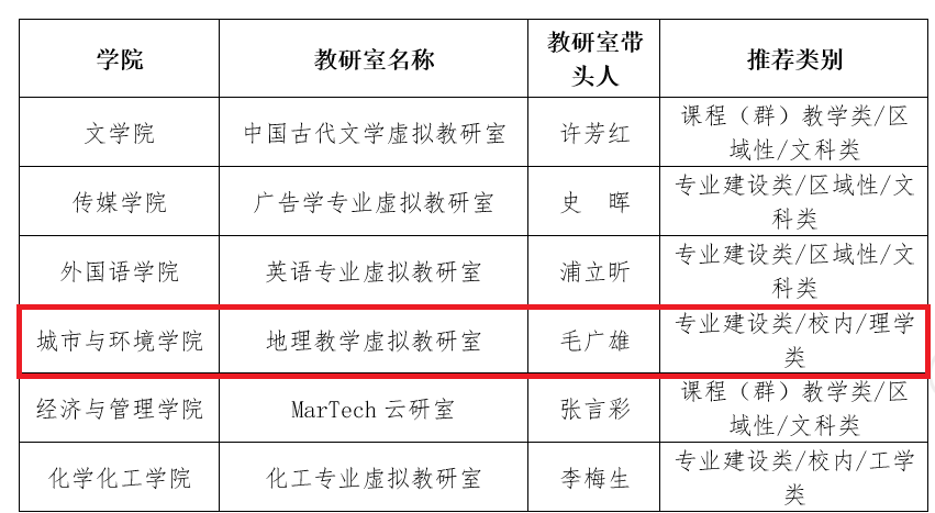 近日,根据上级《关于开展校级虚拟教研室培育项目工作的通知》的文件精神,经公司推荐和专家评审,共确定立项建设校级虚拟教研室6个。其中,城市与环境公司获批立项建设校级地理教学虚拟教研室。