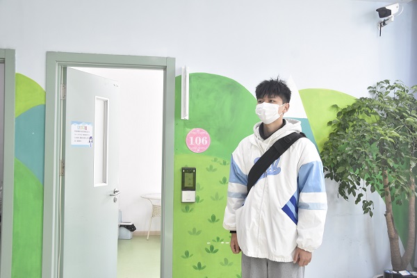 图为志愿者帮助患者开门。记者 尹智彭 摄