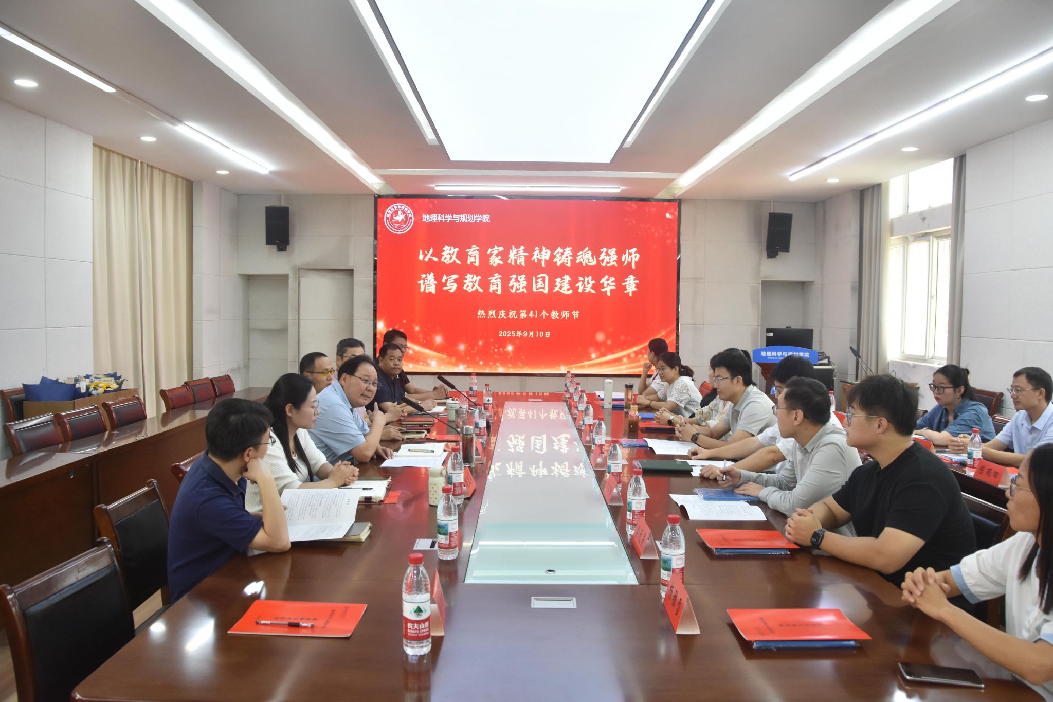 三尺讲台育桃李,四季耕耘铸师魂。在第41个教师节来临之际,云顶国际yd222线路检测中心于相文楼101开展“教育家精神铸魂淮师 谱写教育强国建设华章”教师节座谈会。地科公司党政领导班子、全体教职工参会,公司党委书记殷成志主持座谈会。