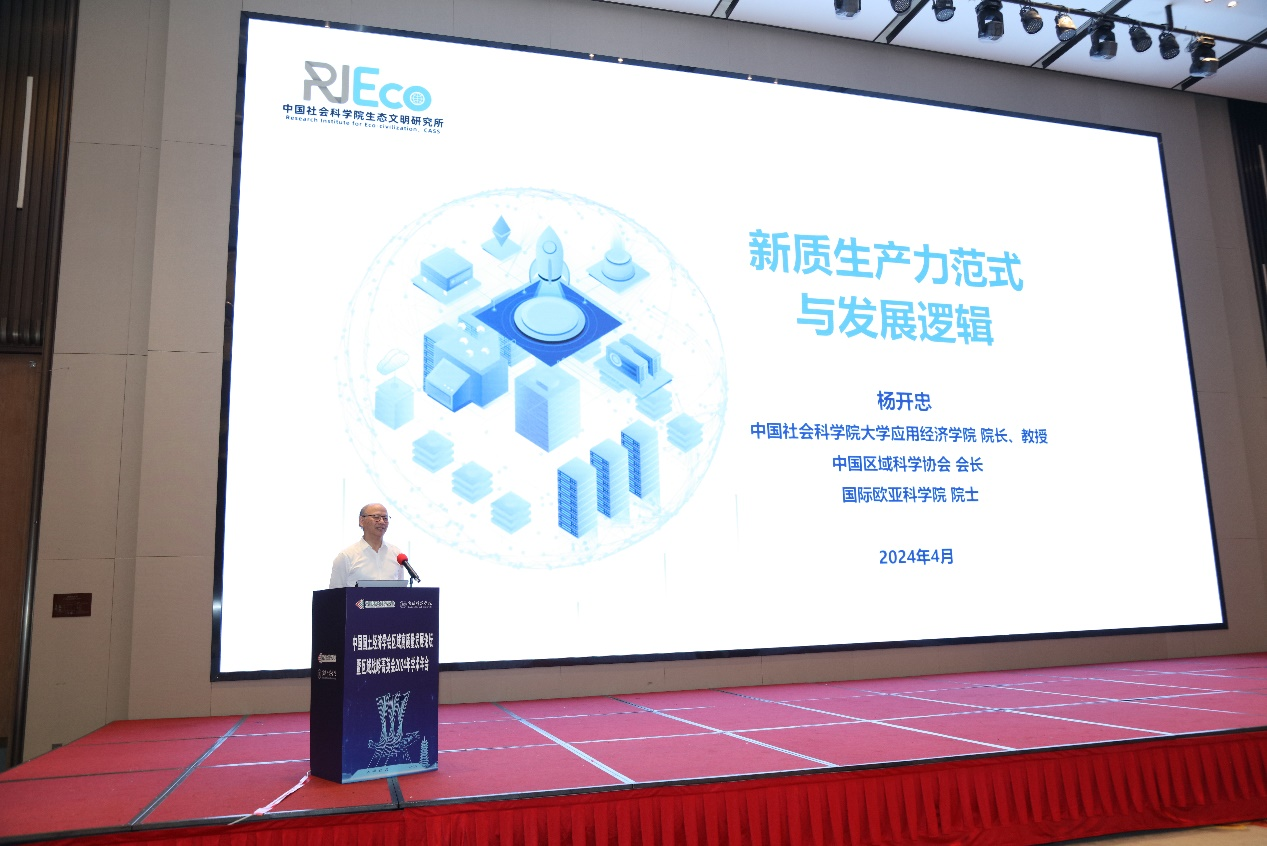 图为杨开忠作作题为“新质生产力范式与发展逻辑”的主旨报告。