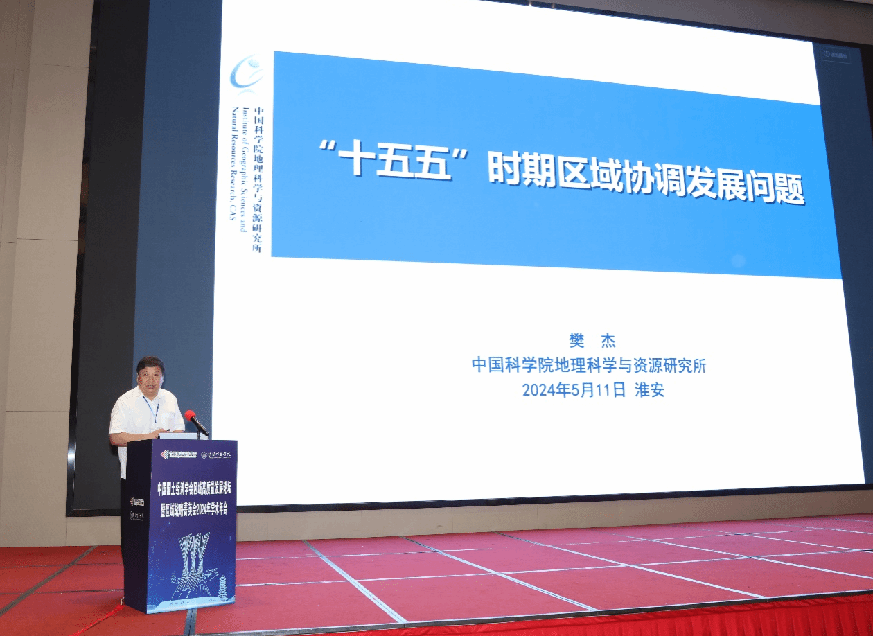 图为樊杰作题为“深入实施四大区域战略,促进国土经济高质量发展”的主旨报告。