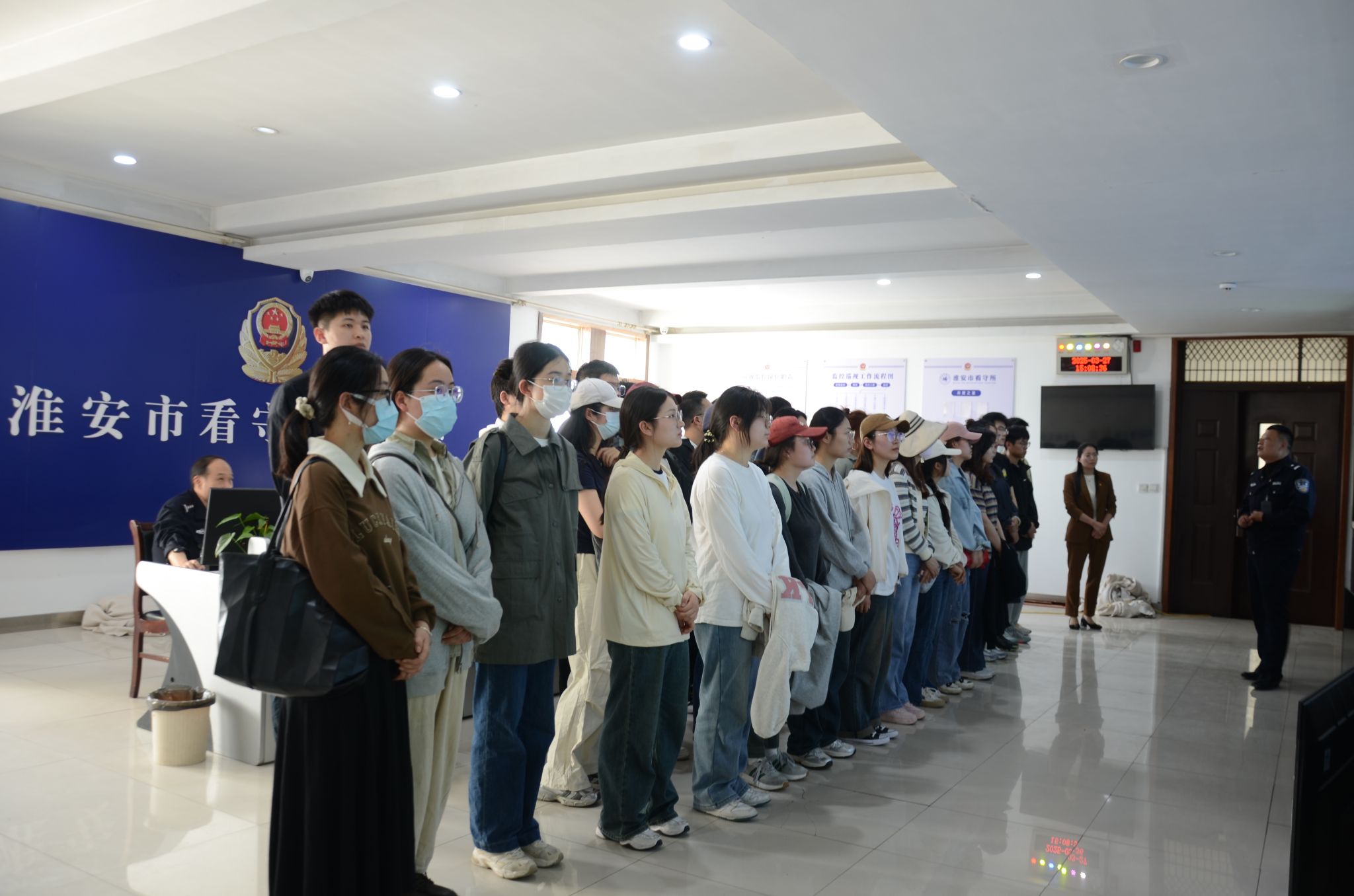 在淮安市看守所副所长的带领下,师生党员参观了收押室、监舍、监控室等场所,深入了解了看守所内部的严格管理制度和高效运作机制,“零距离”了解了在押人员的生活情况,“全方位”感受党纪国法威严和违法犯罪所付出的沉重代价。看守所副所长以案说法,深入剖析了违法犯罪行为给个人、家庭以及社会带来的沉重灾难与深远危害,给大家上了一堂生动的廉洁警示课。他着重强调了“知法、守法、懂法、用法”的重要性,借助一些在押人员的亲身经历与内心忏悔,让大家深刻认识到:法律红线不可触碰,一旦逾越,必将付出惨痛代价。通过目睹“高墙电网”内的铁窗生活,与平时自由工作生活形成鲜明对比,在场的全体党员从心灵深处感受到了强烈震撼,更深切的认识到遵纪守法、廉洁自律的重要性,纷纷表示将以这些典型案例为警示,时刻绷紧纪律规矩这根弦,坚守法律底线、不越纪律红线,不断提升自己的党性修养和廉洁自律意识。