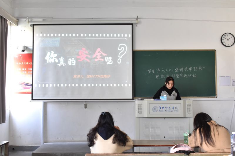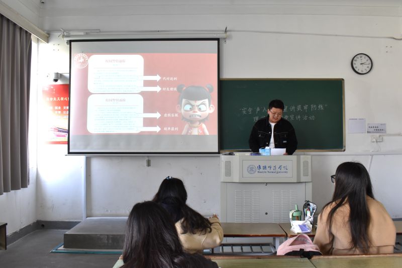 为深入贯彻落实校园安全教育,增强员工的安全意识和防范能力,4月2日下午,云顶国际yd222线路检测中心于19号楼110教室举办了“安全声入人心 宣讲筑牢防线”主题活动。辅导员杨浩出席此次活动。