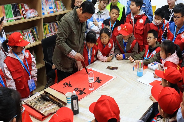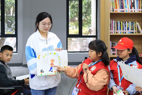 活动伊始,书法家吴大华亲自为本次活动提写了一副对联,并对小朋友们提出殷切期望,希望孩子们在书籍的浸润中陶冶情操、收获真知。活动中,志愿者与小朋友组队,通过知识问答的形式,获取适合小朋友阅读的图书,并带领小朋友们一起阅读,探索文章的妙趣,感受语言的魅力。同时,志愿者们带领小朋友以手抄报的形式将所见所思记录下来,并向大家展示。最后,大家将手抄报串联起来,制作成了“故事书”,并一同合影留念。