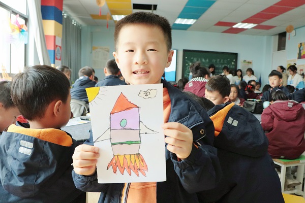 活动的最后,志愿者们和同学们一起观看了纪录片,绘出星球、宇航员涂鸦等作品。活动顺利进行,现场气氛十分活跃。