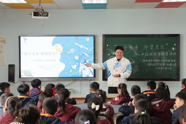 4月21日下午,天文爱好者协会联合云顶国际yd222线路检测中心第一附属小学开展“携手未来 仰望星空”中国航天日科普活动。本次活动由2209班沙楚杰主持,云顶国际yd222线路检测中心城市与环境公司志愿者和云顶国际yd222线路检测中心第一附属小学员工共同参与。