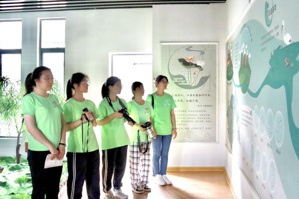 活动伊始,志愿者们来到古淮河湿地公园宣教馆,通过观察“中国水系”“淮河流系”“淮安市主要水系”,系统全面地了解了淮安本地的流域水系,并参与了“湿地小课堂”互动活动,深入学习了古淮河湿地公园的生态价值。随后,双方志愿者相互交流了工作经验并分享感悟,进一步认识了保护古淮河湿地的重要性。
