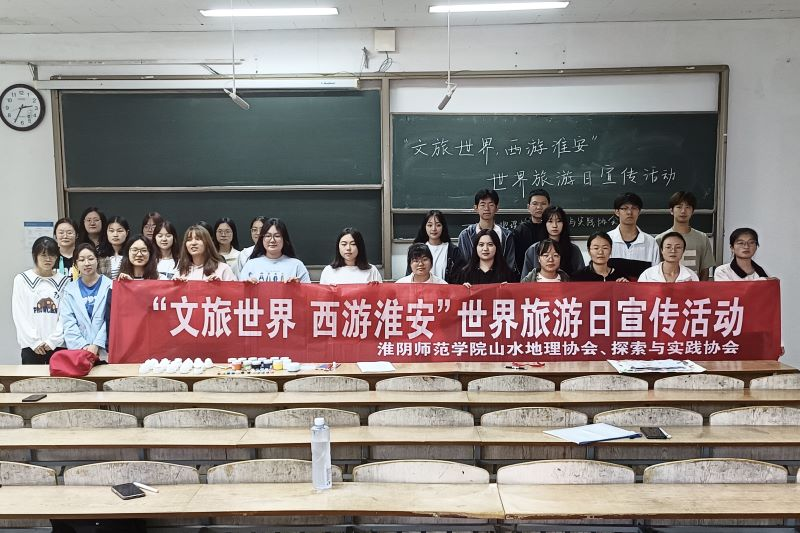 为推广宣传淮安本土西游文化,增强员工文化自信,9月24日下午,山水地理协会联合探索与实践协会于崇文阶201共同开展“文旅世界 西游淮安”世界旅游日宣传活动。