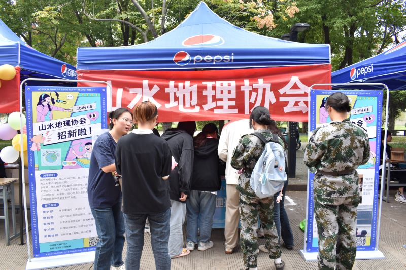 图为山水地理协会招新现场。(记者 朱诣高 摄)