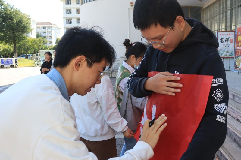 活动最后,参与者们于南苑食堂前的横幅上签名,并同宣传海报合影留念。同学们纷纷表示,要做“光盘行动”的倡导者、“文明餐桌”的实践者,让文明新风遍地开花。
