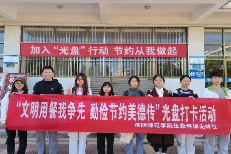 为增强各位同学爱惜粮食的意识,进一步引导同学们爱粮节粮、合理消费,让节约粮食成为一种自觉,10月15日至10月21日,伍豪环保先锋社于南苑食堂前举办“文明用餐我争先 勤俭节约美德传”光盘打卡活动,该活动一经开展便受到全校同学的积极关注和报名参与。