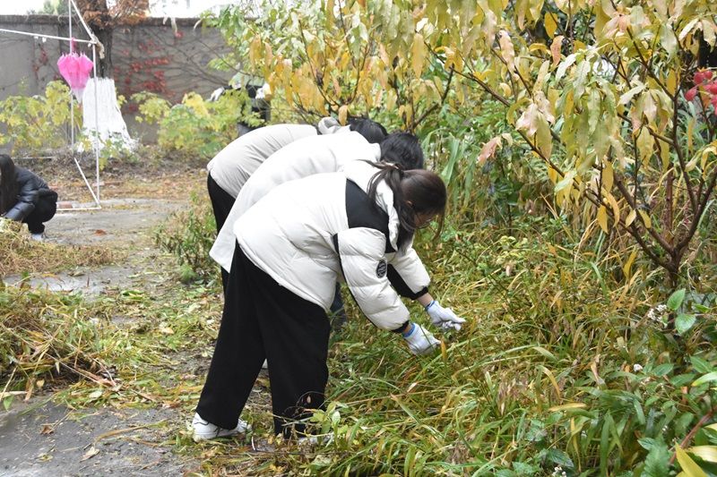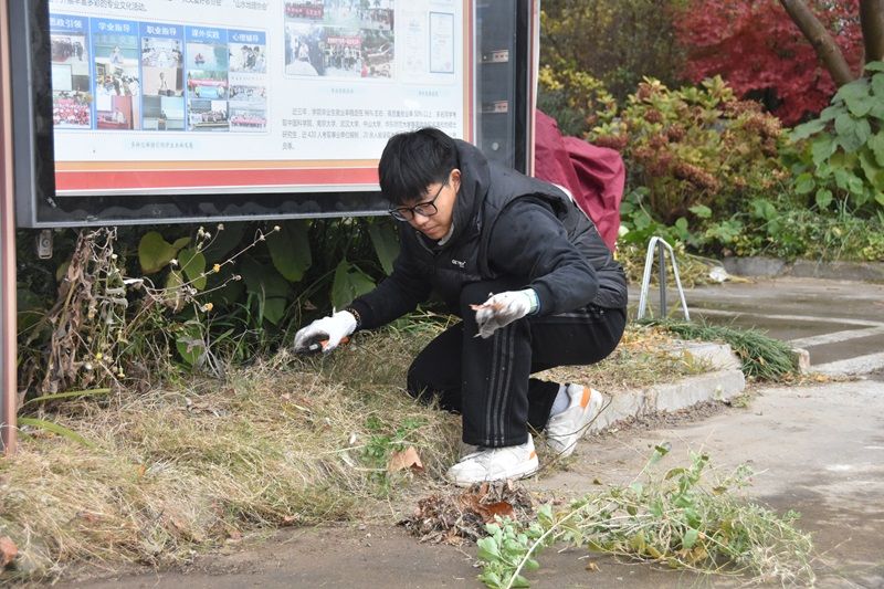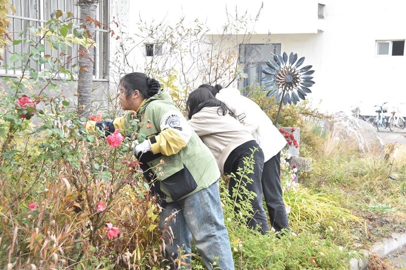活动中期,在徐勇老师的带领下,同学们有了明确的分工。随后,同学们便投入到紧张有序的改造百花园的任务中。其中,一部分同学负责撰写植物名牌,一部分同学负责修剪花枝、清理落叶……师生们相互配合,不怕脏,不怕累,共同为改善公司百花园环境贡献自己的力量。
