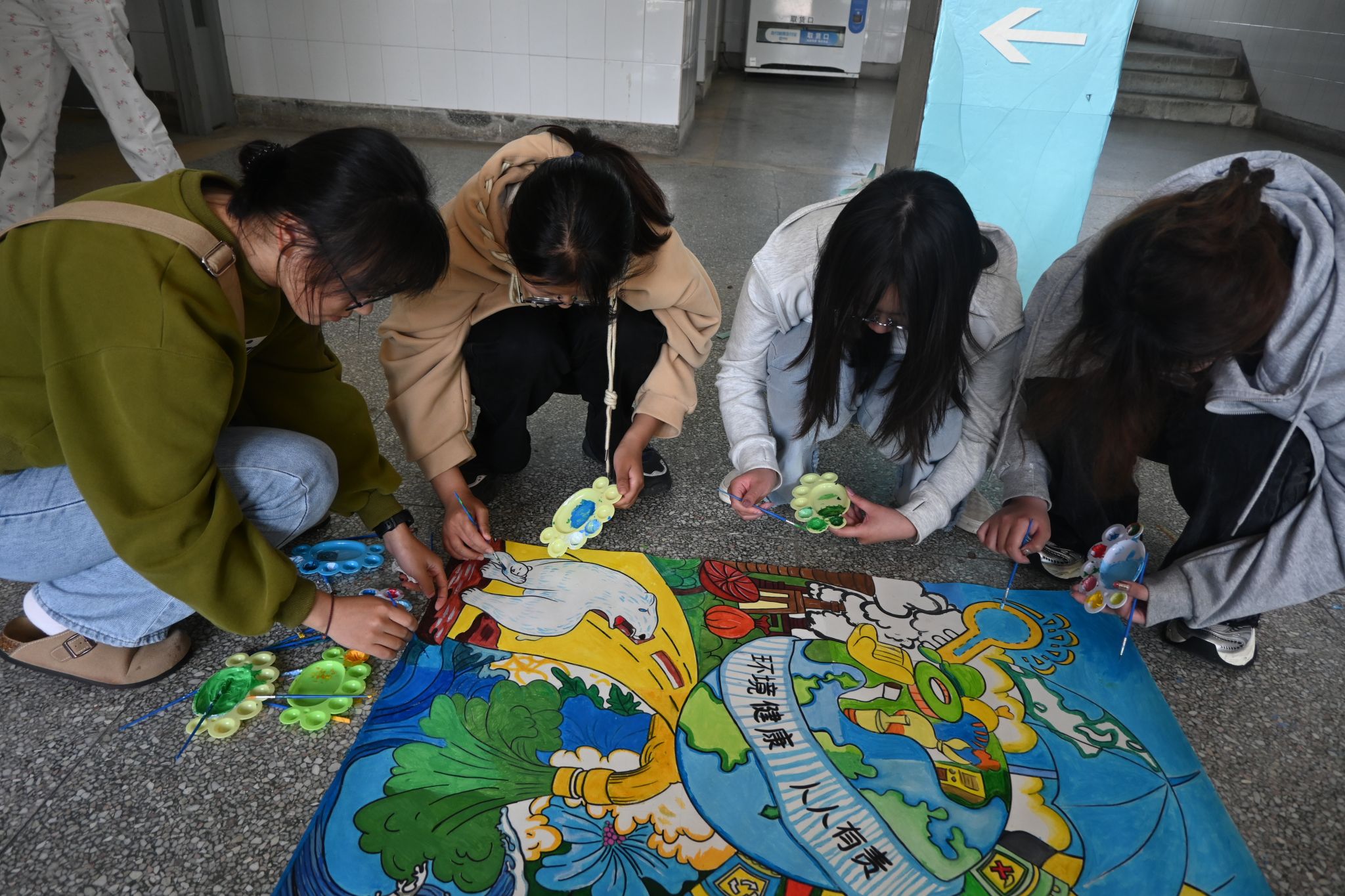 活动设置了绿色环保摄影大赛、环保站点打卡、共绘地球巨幅画等三个环节。“绿色环保摄影大赛”鼓励同学们用镜头记录下绿色环保的画面,用镜头传达保护环境的绿色号召,对作品筛选后在宣传平台上展示,旨在让更多的同学发现地球之美、绿色之美。“环保站点打卡”吸引同学们领养绿植,与“美丽中国,我为你代言”主题板合影,旨在引导大家关注环保,将绿色的种子播撒在心田,让环保的理念深入人心。在共绘地球巨幅画活动中,同学们用画笔赋予巨幅画鲜明的色彩,绘画内容丰富多彩,色彩明快、形象生动,通过绘画表达对地球家园的热爱与祝福,让“爱护地球,我为地球添色彩”在同学们心中生根、发芽、开花。