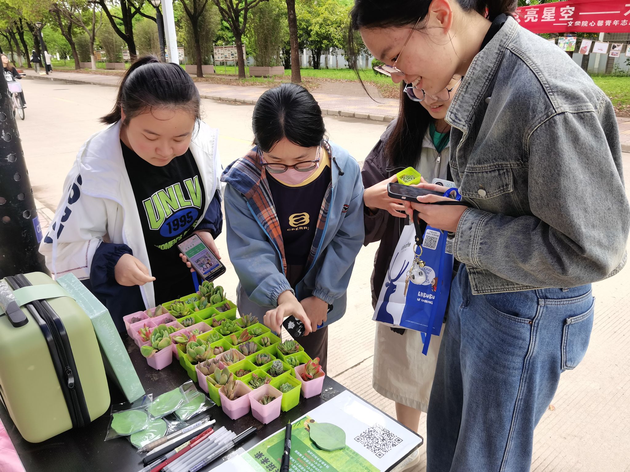 图为同学们领养绿植。记者 陆欣妍 摄
