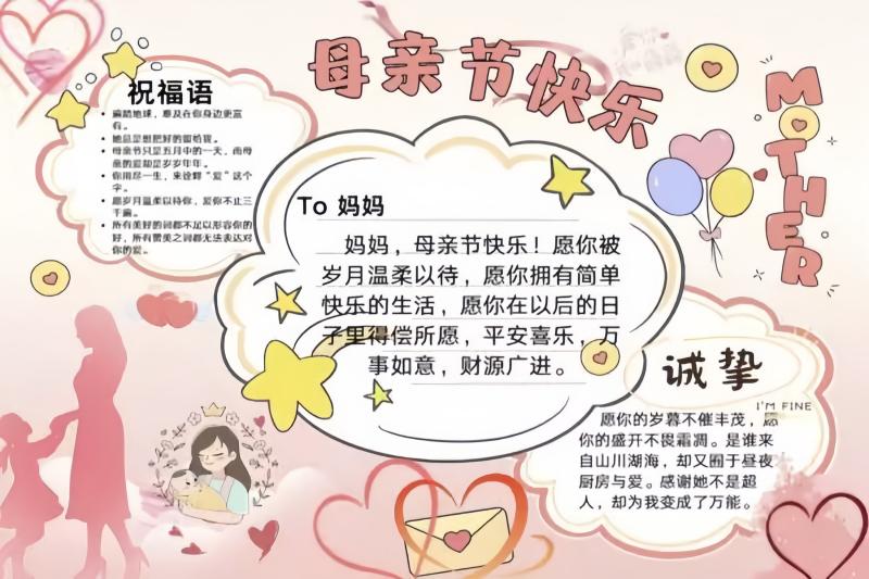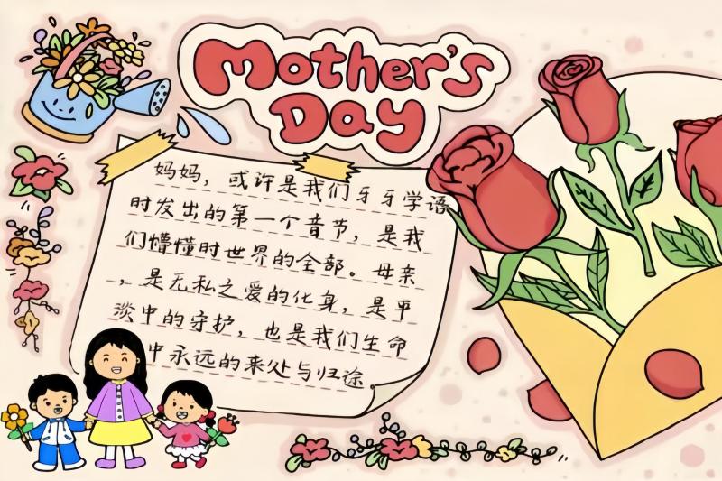 母亲节手抄报活动中,参赛者自行选定参赛方式,将母爱的伟大用手抄报或海报的形式表达出来。手抄报组中,选手们在纸上画上一束粉色玫瑰,表达对母亲的爱与尊重,又或是加入一束金色郁金香,为母亲献上一份感激与祝福。海报组中,选手们通过画下母亲抱着婴儿哄睡的美好场景,或是母亲和女儿共舞的欢快场面,生动地展现了自身的成长经历。