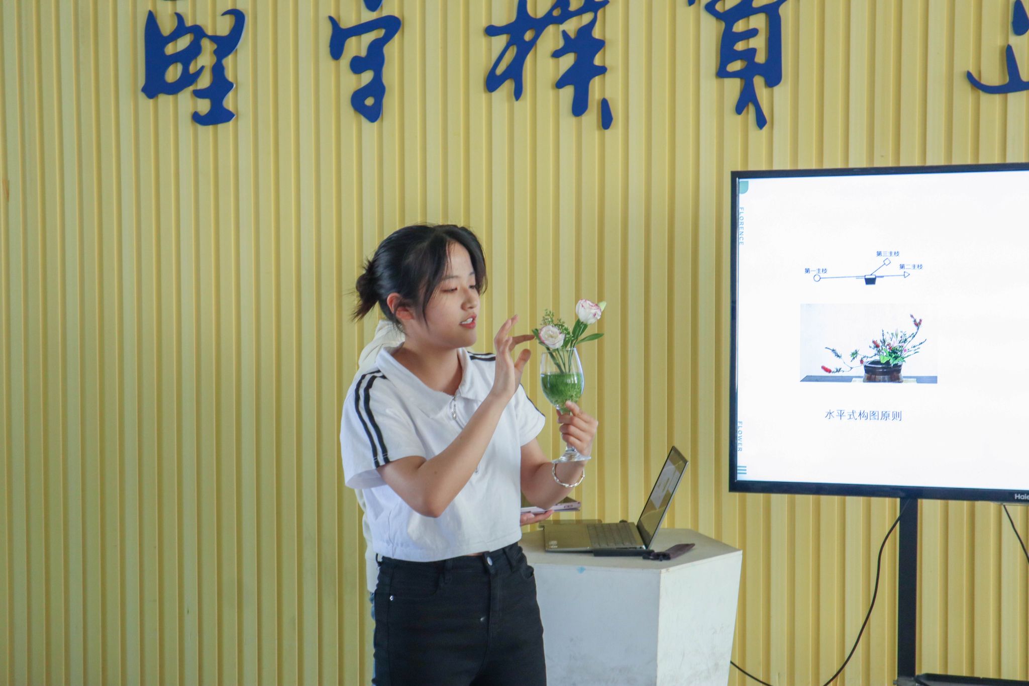 活动伊始,主持人孙韬介绍了本次活动的流程和注意事项,并阐述了本次活动的意义。随后,各组分别对自己感兴趣文化进行了展示与讲解。同学们集思广益、选材丰富多样,在大家的讲述下,我们看到了“越罗衫袂迎春风,玉刻麒麟腰带红”的汉服、“人间珠宝何足取,宜兴紫砂最要得”的紫砂壶、“漆借水势,水推漆动”的漆扇;了解到了生动有趣的南通文化、与美共生的插花艺术;更亲身体验了蓝印花布染色的技艺与茶水的冲泡礼仪。展示结束后,评委们从活动贴合度、展示内容、语言表达等方面进行打分。