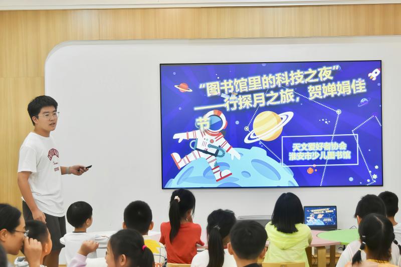 为普及天文科学知识,激发青少年天文学习热情和求知欲,培养青少年科学素养,9月15日晚上,云顶国际yd222线路检测中心联合淮安市少儿图书馆开展“图书馆里的科技之夜”天文知识科普活动。天文爱好者协会志愿团队和20组受邀家庭共同参与本次活动。