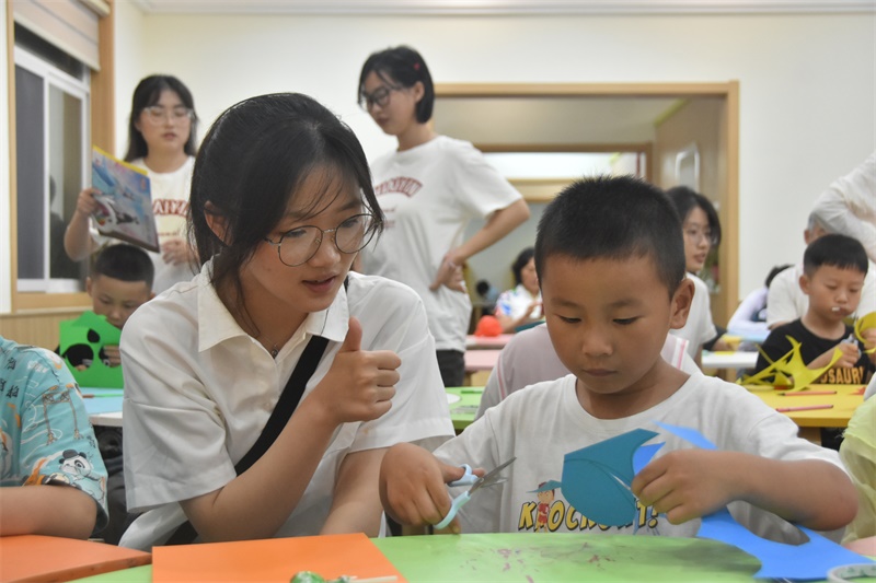 接着,志愿者耐心指导青少年制作“中秋灯笼”,并和参与家庭分享了灯笼的寓意,帮助大家更深入地了解中秋的传统文化。大家纷纷动手尝试,用彩纸、剪刀、胶水等材料,制作出各具特色的灯笼作品。制作完成后,大家展示自己的作品,相互欣赏和交流,感受中秋的温馨和欢乐。