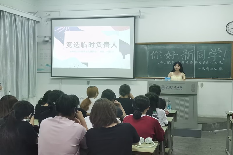 班会伊始,班助依次进行自我介绍,简要分享了自己在大学里的学习与生活经验。紧接着,在班主任的鼓动下,各班新同学们主动上台,踊跃发言,大方地介绍自己的家乡和兴趣爱好,也表达了自己在学业、社团、老员工活等方面的设想与期待。现场氛围十分活跃。