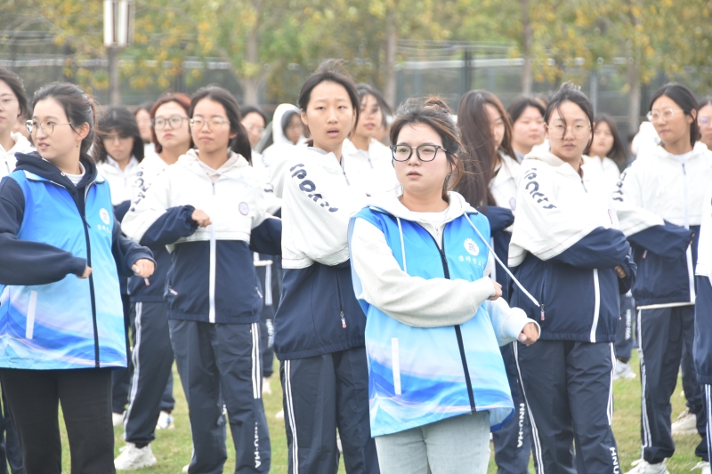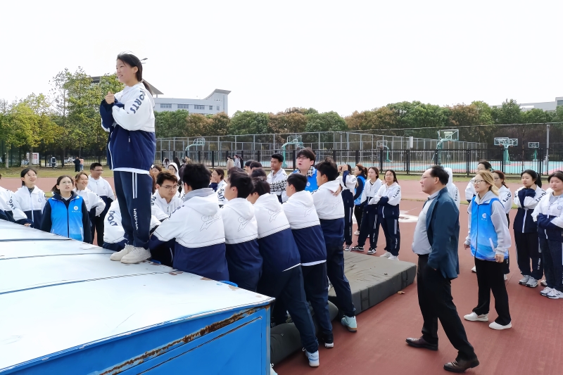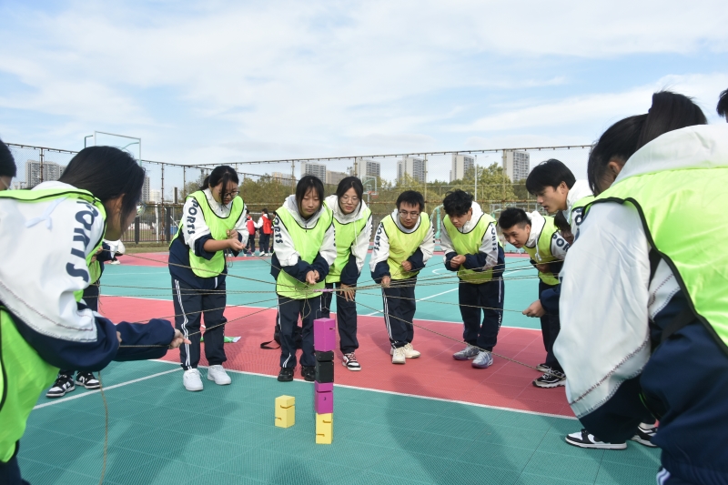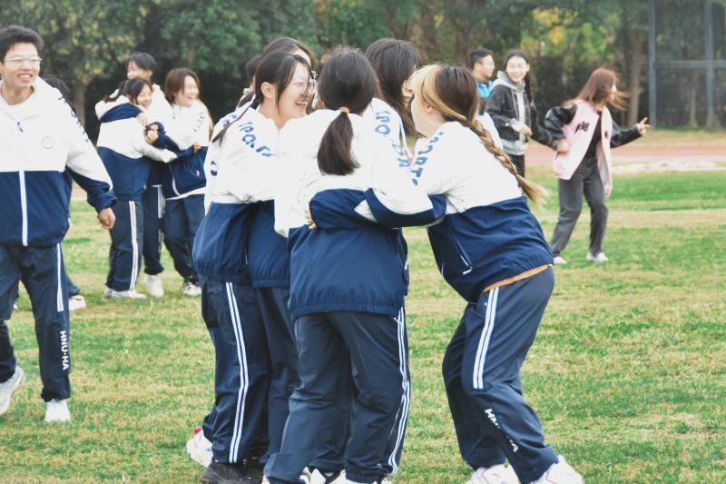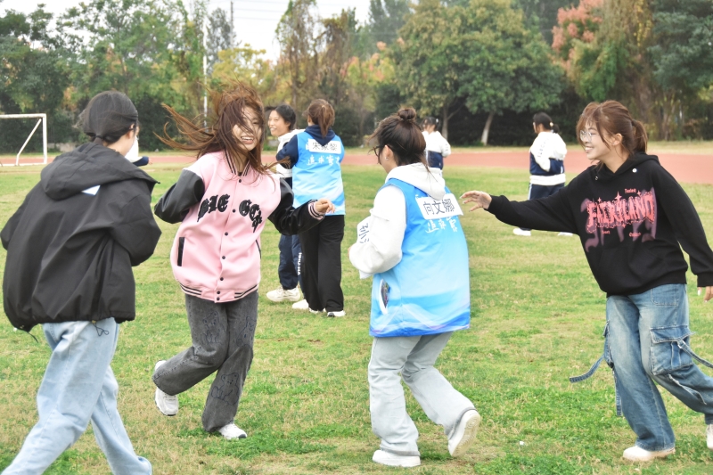 秋风微佛,当草坪披上一层温暖的金色时,户外素质拓展训练正式拉开帷幕。在“抱团打天下”中,同学们环绕成圆,随着音乐律动轻跑,指令发出后,大家按人数紧紧拥抱,在有限的组织时间里考验同学们之间的协同性、整体性;“信任背摔”将自己的后背托付给小组成员,下方队友用他们坚实的臂膀稳稳接住,一声声响亮的口号,一双双稳健的力臂,传递着彼此的信任与支持;“撕名牌”项目则把上午活动推向高潮,同学们充分展现了自己的速度与激情,或疾步如飞,或巧妙躲避,将力量的较量与心理的博弈融汇一体。活动中,同学们从手足无措到冷静应对,从慌乱不堪到沉着部署,在不断地沟通和磨合中逐渐相互信任、默契交流。