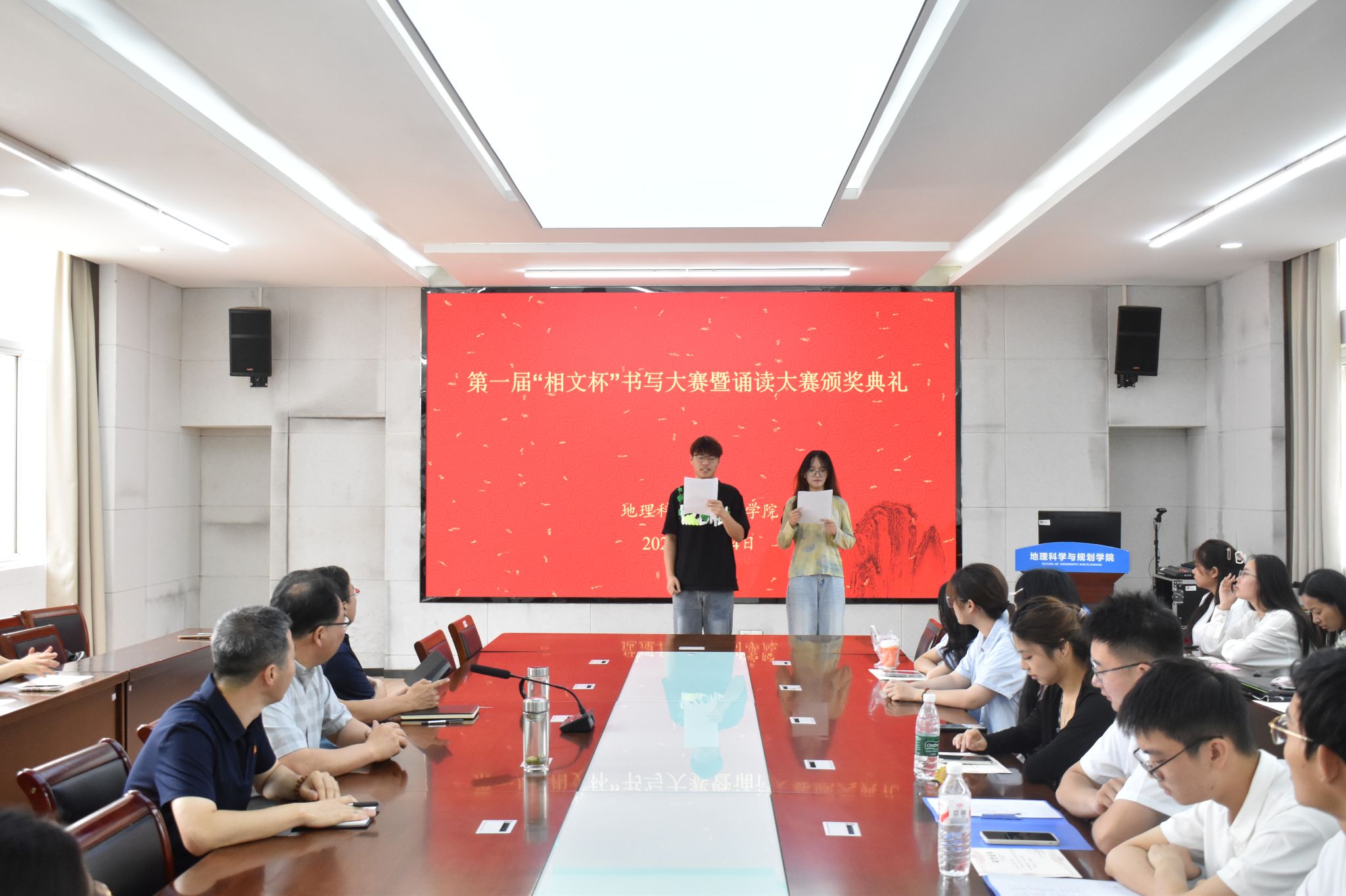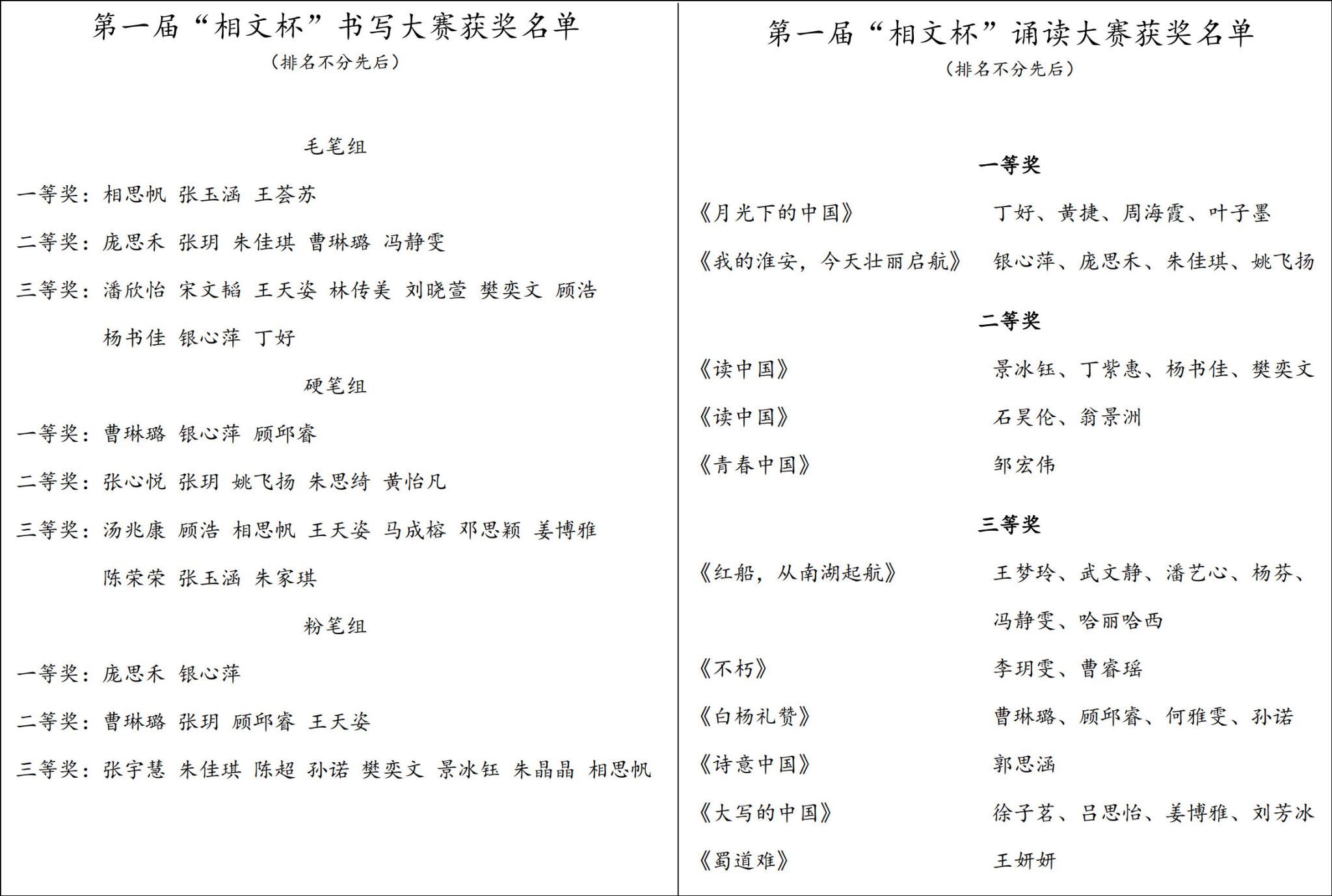 颁奖典礼上,获奖同学依次展示书写大赛成果与诵读大赛作品,现场欢声雷动、氛围热情。书写作品的毛笔字笔力遒劲、钢笔字行云流水、粉笔字布局精妙,令人赞叹不绝;诵读作品则以饱满情感、抑扬顿挫的语调,将文字魅力演绎得淋漓尽致。紧接着,汤兆康、姜博雅宣读获奖名单,殷成志和刘传明为诵读大赛获奖代表颁奖;王怀军、任启龙、杨雅雪分别为毛笔字、粉笔字和硬笔字的获奖代表颁奖。