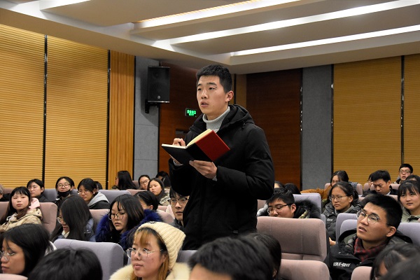 王教授的讲学细大不捐,微言大义,博得了在场观众的热烈掌声。为了使讲学更加透彻,王法辉教授特地预留时间与同学们进行沟通交流,同学们积极提出自己的想法与见解,王法辉教授都一一为他们耐心解答。其中,1603班的赵鹏飞同学在问到中国新农村建设如何从散局过渡到集聚的时,针对这一问题,王教授认为:“中国新农村建设问题涵盖很多方面,包括教育问题,人口素质等方面,并不是通过简单的规划能够解决的,它所涵盖的是社会问题,目前这个问题并没有得到很好的解决。”