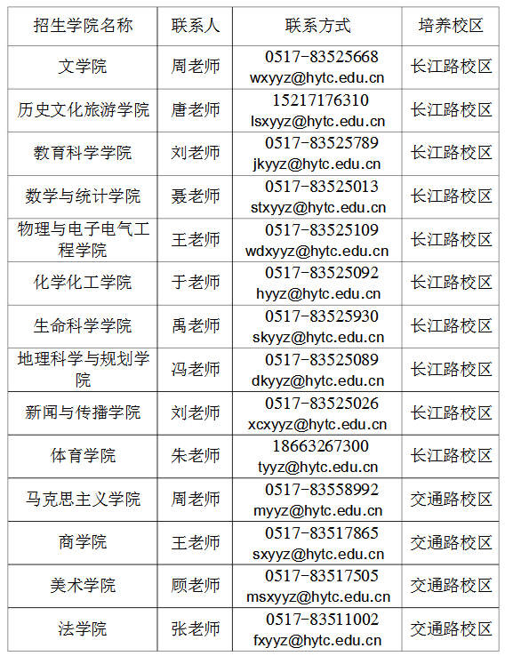 通讯地址:江苏省淮安市长江西路 111 号(长江路校区)
