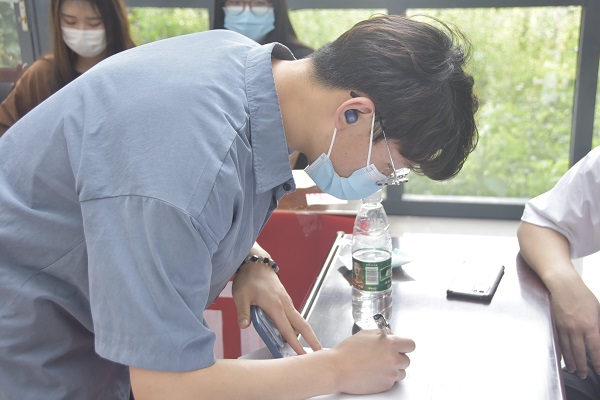 图为参与者填写问卷。记者 赵艺雪 摄