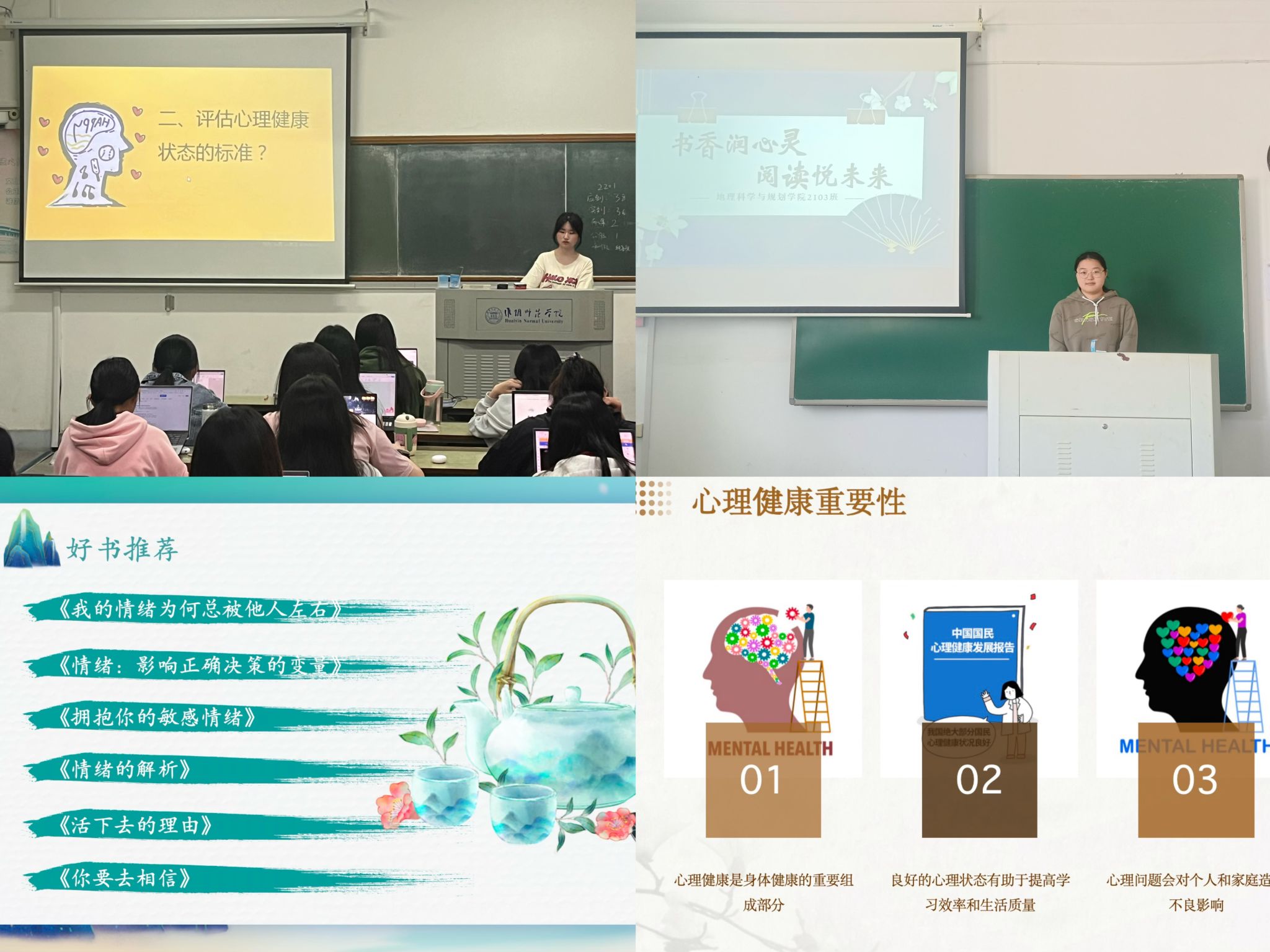 为了贯彻“五育润心,沐光同行”心理健康教育主题,践行以智慧心,打造一个以师为范、以书为友的学习环境,5月6日至5月10日,2021级、2022级、2023级各班组织开展“书香润心灵,阅读悦未来”心理主题班会。本次班会由各班心理委员主持,全体员工参与班会。