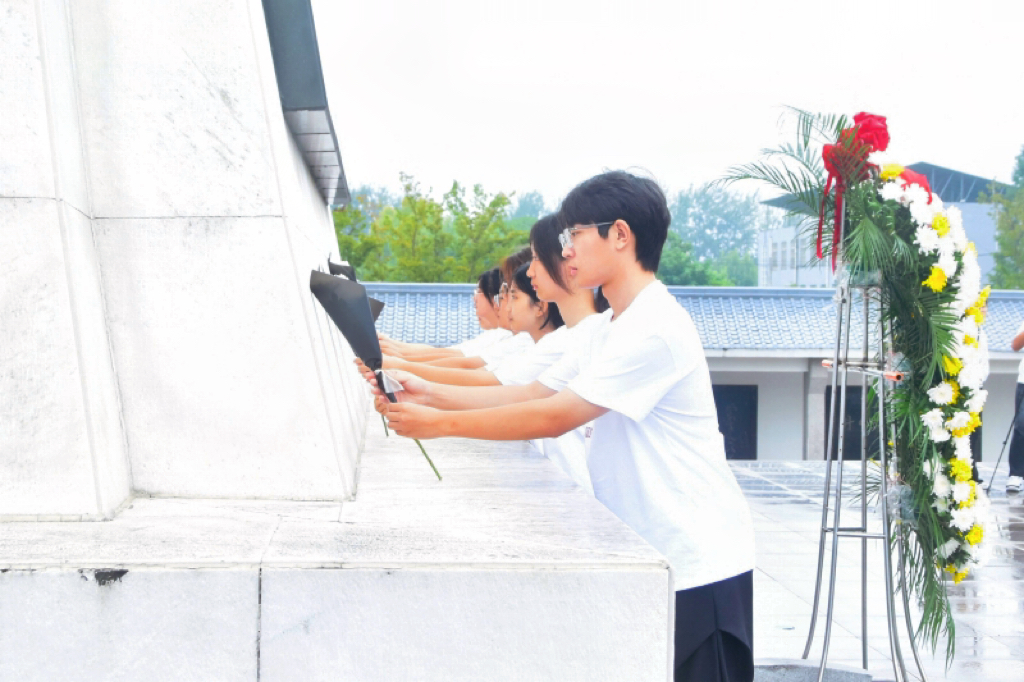 献花仪式环节庄严肃穆,全体同学肃立,向烈士敬献鲜花。2310班退伍士兵、中共党员徐鹏带领同学们朗诵纪念词,并分享了对烈士精神的理解。他表示,烈士精神是中华民族的宝贵财富,当代人应铭记历史,以实际行动传承英雄之志。仪式结束后,同学们自行参观纪念馆,深入了解新四军事迹,深切感受先烈的爱国情怀。