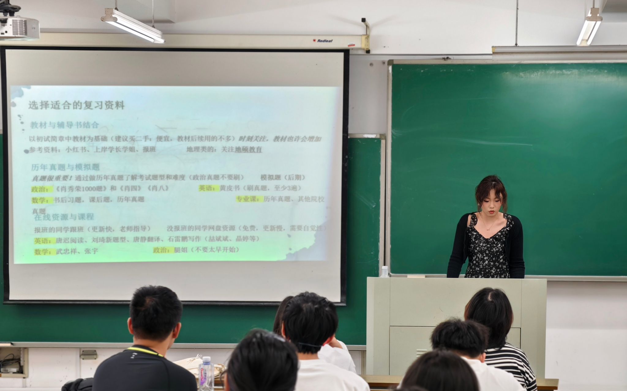 杨文妍考取了华中师范大学硕士研究生。她率先为同学们分享考研经验。她以自身经历为范本,围绕考研院校与专业选择、备考计划制定展开分享,并系统传授了高效学习方法和时间管理技巧。