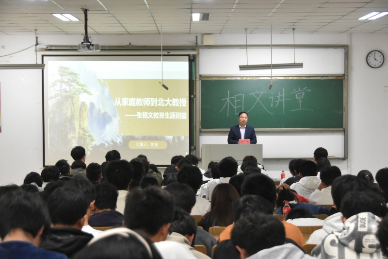 紧接着,於亮主任以“从家庭教师到北大教授:张相文教育生涯的回望”为主题,从教学互动、学术成就、经世致用三个方面进行了精彩的报告。他详细讲述了张相文的求学、授徒及任教经历,突出了张相文在编纂教科书、创办中国地学会等方面的卓越贡献,并深入探讨了张相文研究“秦岭-淮河”地理界线、积极寻求地学救国之道以及组织滦州起义等济世情怀。於主任呼吁同学们注重实践能力和创新精神的培养,坚持“知行合一”的学习理念。